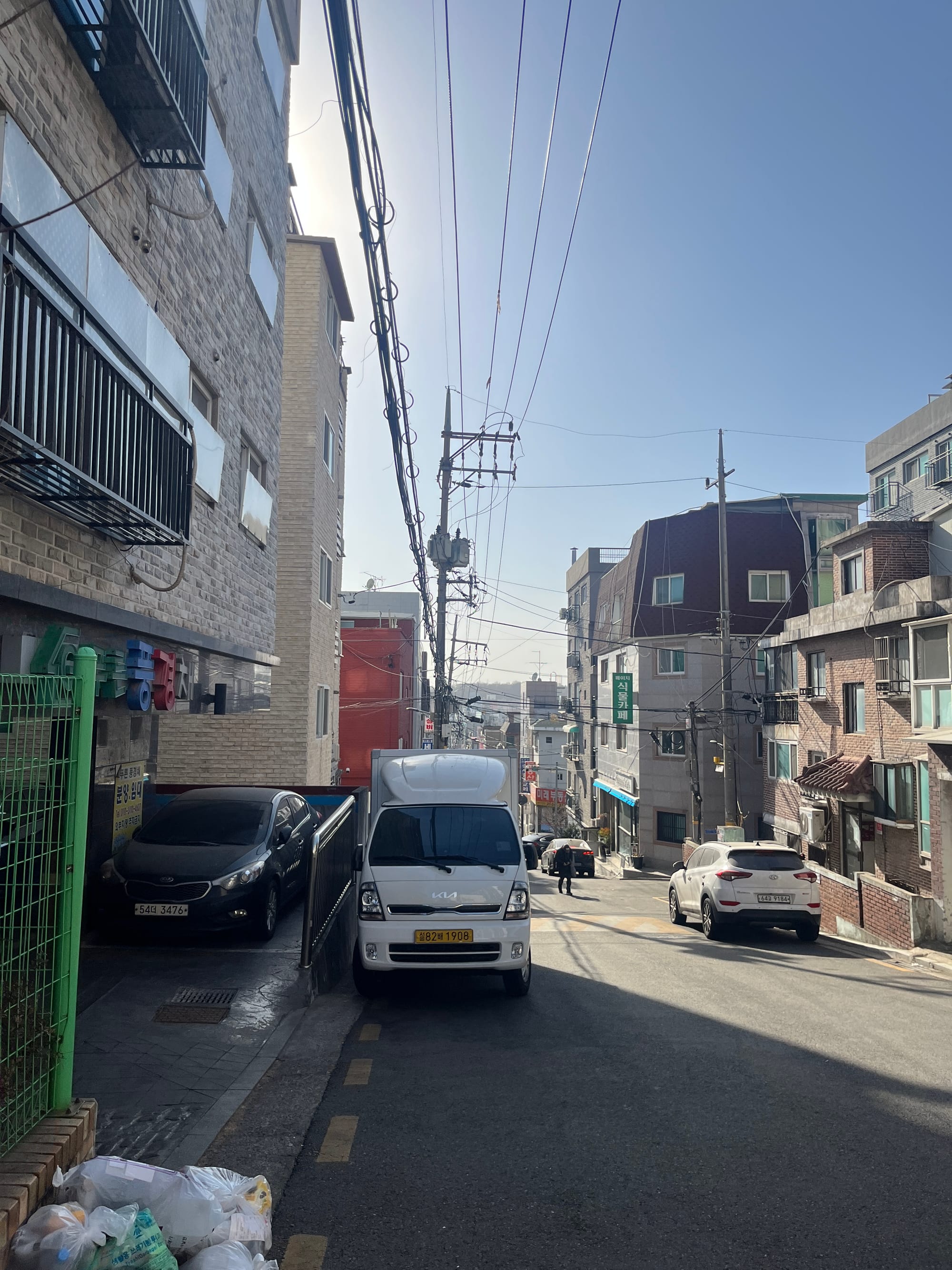 중간에 언덕이 좀 있음. 까치산 역 근처는 이것저것 매장이나 상권이 있음